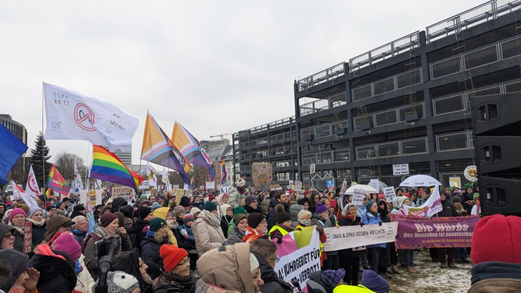 In Düsseldorf haben am Samstag mehr als 2.500 Menschen gegen Parteien am rechten Rand demonstriert. Auch wir haben es uns nicht nehmen lassen und sind mit vielen anderen OMAS GEGEN RECHTS Gruppen aus ganz NRW nach Düsseldorf gefahren.