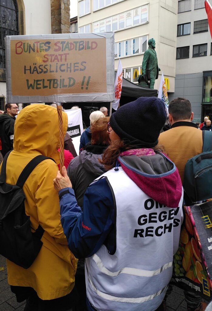Unter dem Motto „Wir sind das Stadtbild“ fand am 25. Oktober in der Essener Innenstadt eine Kundgebung statt. Friedrich Merz hat tagelang, selbst auf ausdrückliche Nachfrage seine Aussage zum Stadtbild nicht klargestellt und damit eine rassistische Interpretationsmöglichkeit im Raum stehen gelassen.